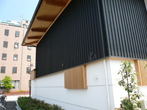 黒い杉板と純白の漆喰のコントラストに木の色合いが絶妙に配された外観。屋根の軒を大きく出すことで雨や紫外線から漆喰の外壁を守ります。